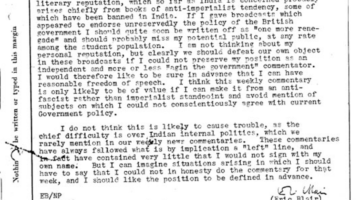 Letters by Eric Blair (George Orwell) from the BBC archive.