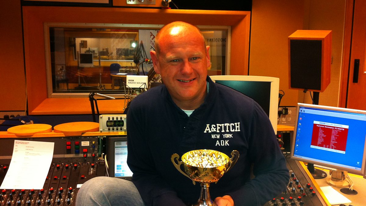 Neil tries out the MVS powerboat simulator (Paul Miller Soul Show on DAB only).