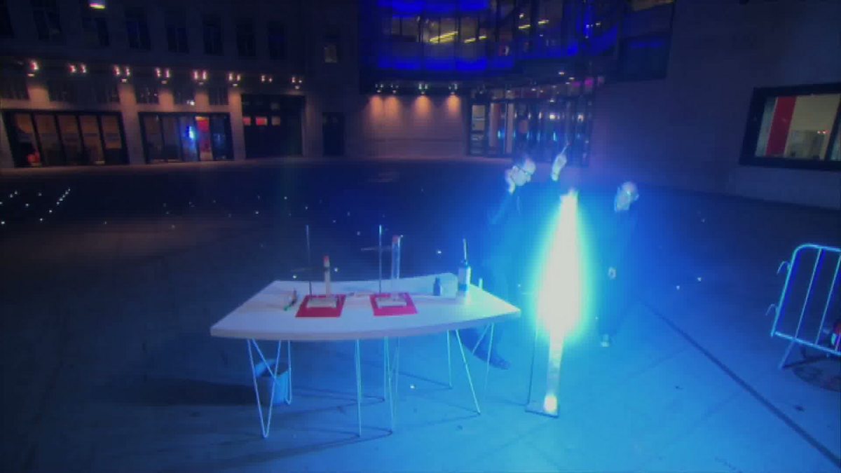 Chemistry expert Andrea Sella demonstrates how an early camera flash would have worked.