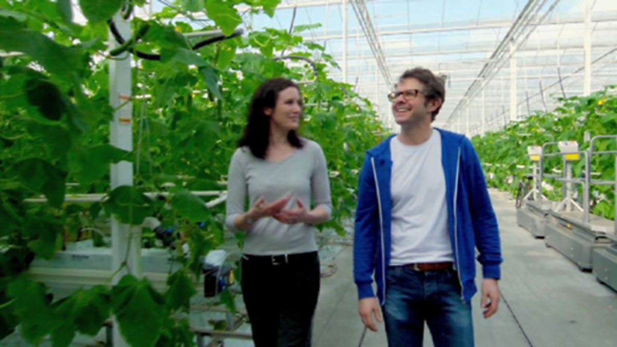 In Ecomaths, Stefan Gates visits a huge hi-tech greenhouse in Kent to learn how much rain can be collected from a roof and how much water can be saved.