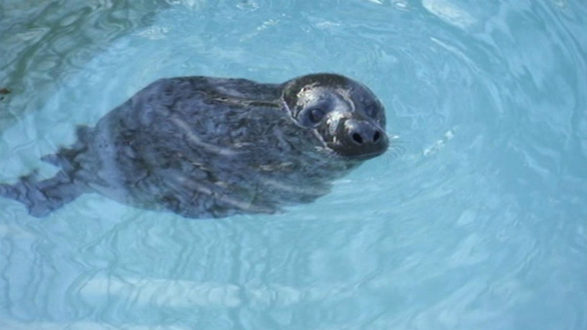 Rescued seal Hamish gets his first taste of the open water at a wildlife sanctuary on Shetland.