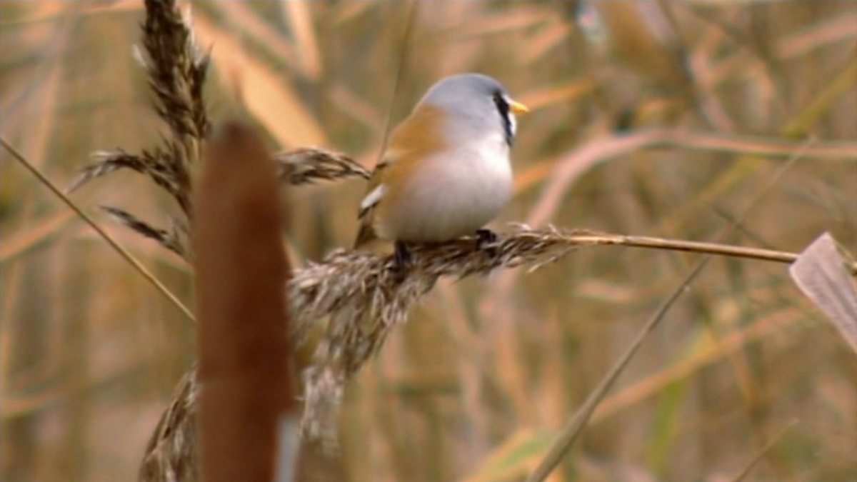 At RSPB Leighton Moss, Ellie helps warden John Wilson give the bearded tits an unusual winter food.