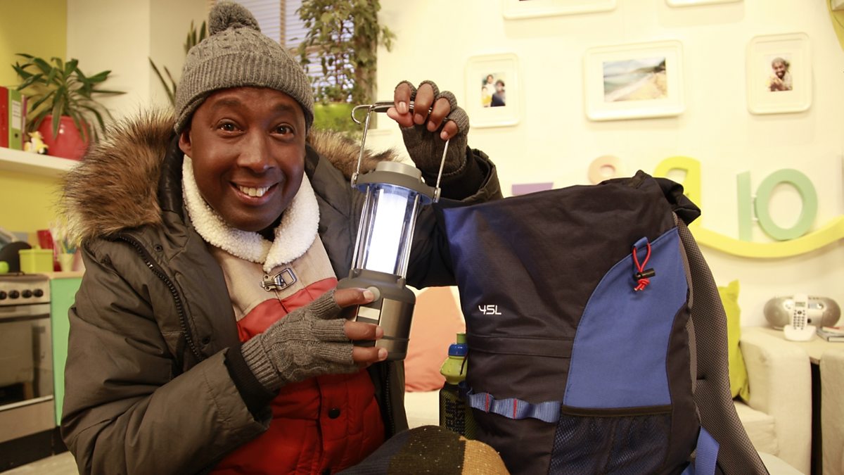 Rodd is trying to squeeze 5 jumpers into his camping rucksack. He has to take 1 out, and shows us that we can use subtraction to work out how many jumpers are left inside, without having to take them out and count them again. We join in with Rodd and learn that ‘5 take away 1 leaves 4’, through counting with his special abacus, finger counting, sleeping bag ‘moves’, counting back on the number track, and singing a number rap.