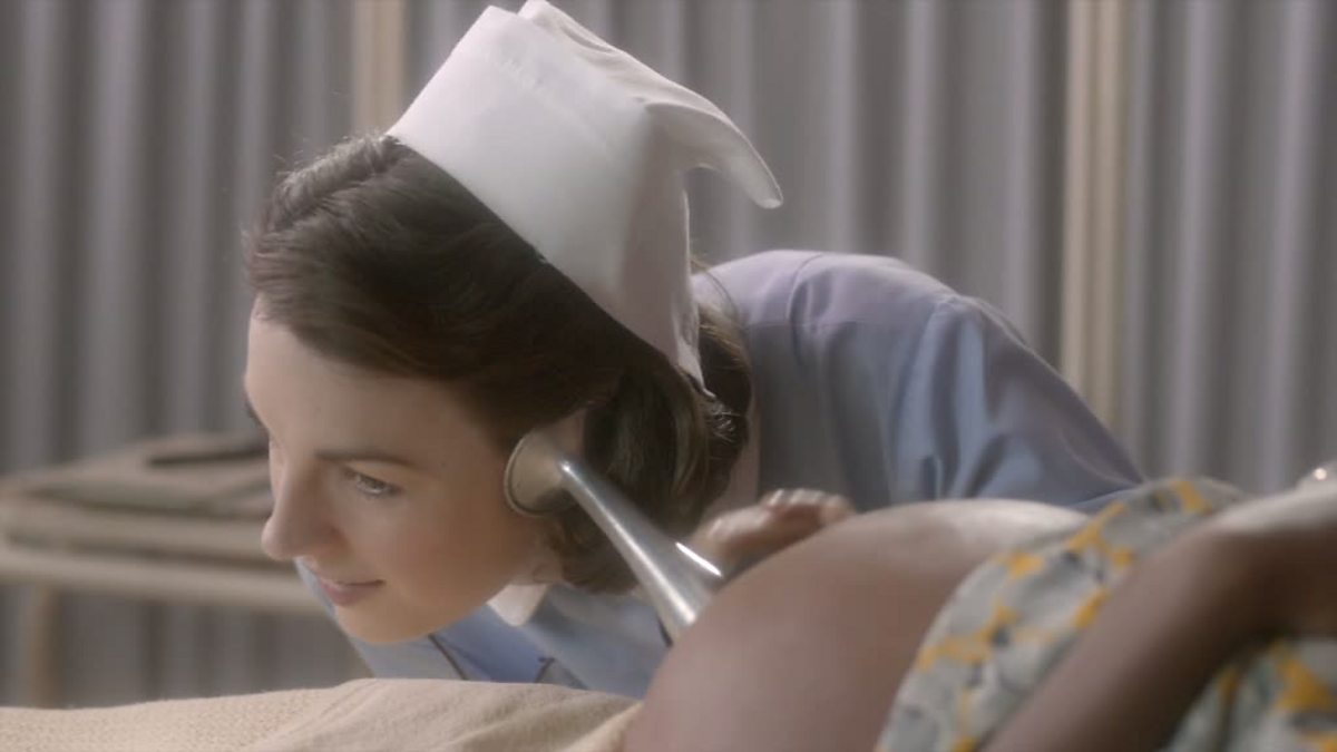 At the antenatal clinic Jenny books in mother-to-be Monique Hyde. Haling from warmer climates than Poplar, Monique has not long been in the country and she and Jenny bond over adjusting to the distinct ways of the East End and its inhabitants while Monique's neighbor can be heard disciplining her daughter in the waiting room.
