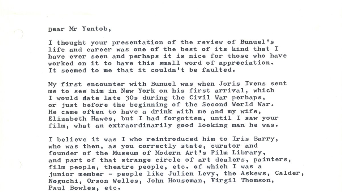 Following the 1984 broadcast of The Life and Times of Don Luis Bunuel Losey contacts Arena