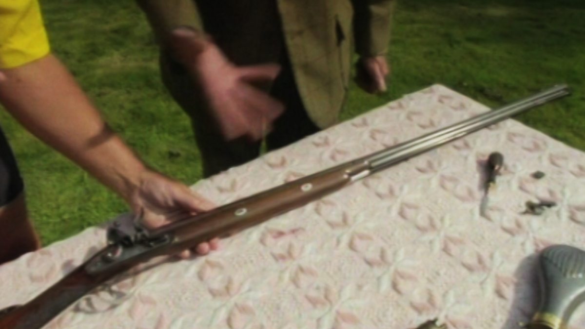Use of a matchlock musket from the Stuart period.