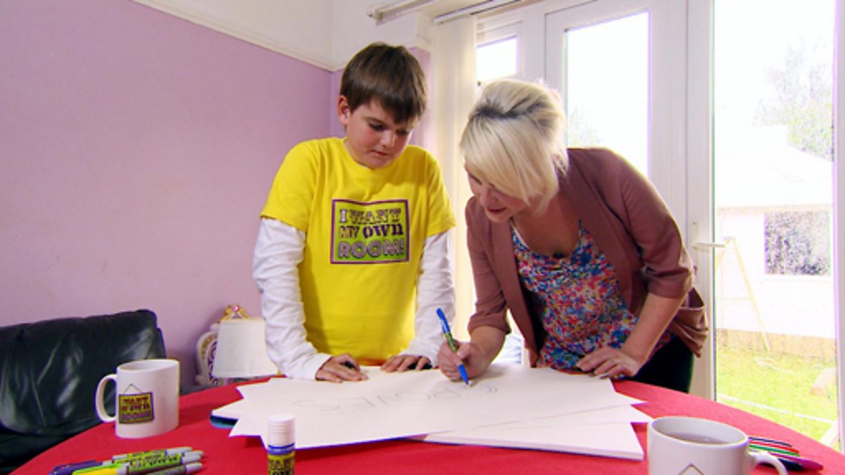 Different company logo styles are looked at – shapes, use of text and symbols as well as bold, bright colours can all be used when designing a logo for a brand. Different techniques are used when designing a logo, it’s not always necessary to use a computer. A young entrepreneur is shown how to draw a design for his own company logo; it is then produced by a print company.