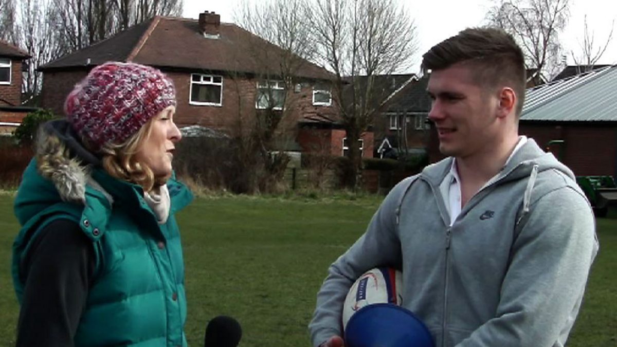 Rachel Burden has a lesson in how to score a goal from England fly half Owen Farrell. How many attempts do you think Rachel will need before the ball crosses the bar?