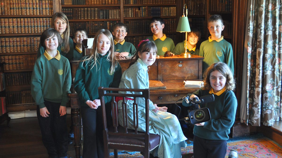 Primary school pupils learn the skills of TV production on the guided tour around Brodie Castle, led by 'in-character' tour guide, Ise Brodie.