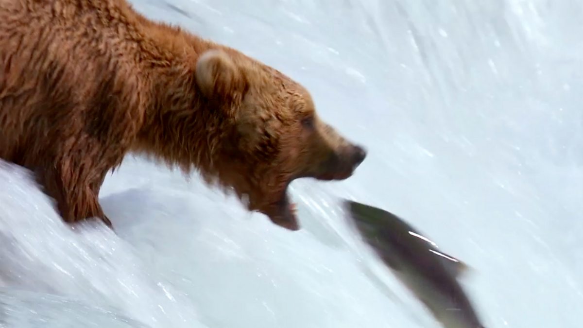 As the big male bears take an afternoon nap, Kali sneaks up to the Falls to fish.