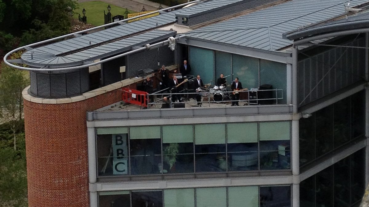 To mark the anniversary, we had a band playing Beatles songs up on our roof!