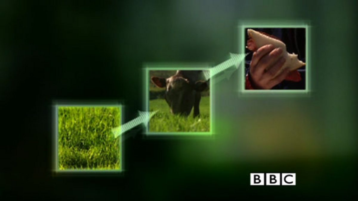 Plants are described as being able to make their own food during photosynthesis. Animals that eat plants are named as herbivores. Descriptions of omnivores and carnivores are also given. Food chains are explained, and specific detail is given regarding the flow of energy from producers to consumers.