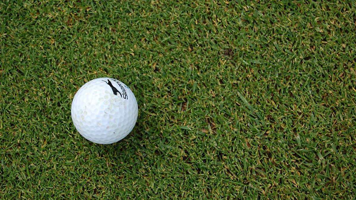 Gilleasbuig MacDhòmhnaill agus Iain Moireasdan a' faighinn leasan goilf.