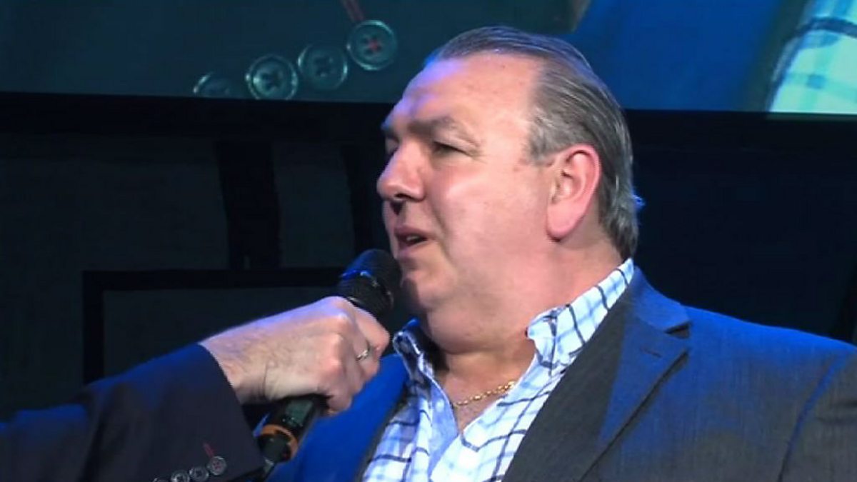 Everton legend Neville Southall presents the award for 606 Fan of the Season - and takes some stick from Robbie Savage - at 5 live's Big Day Out in Liverpool.