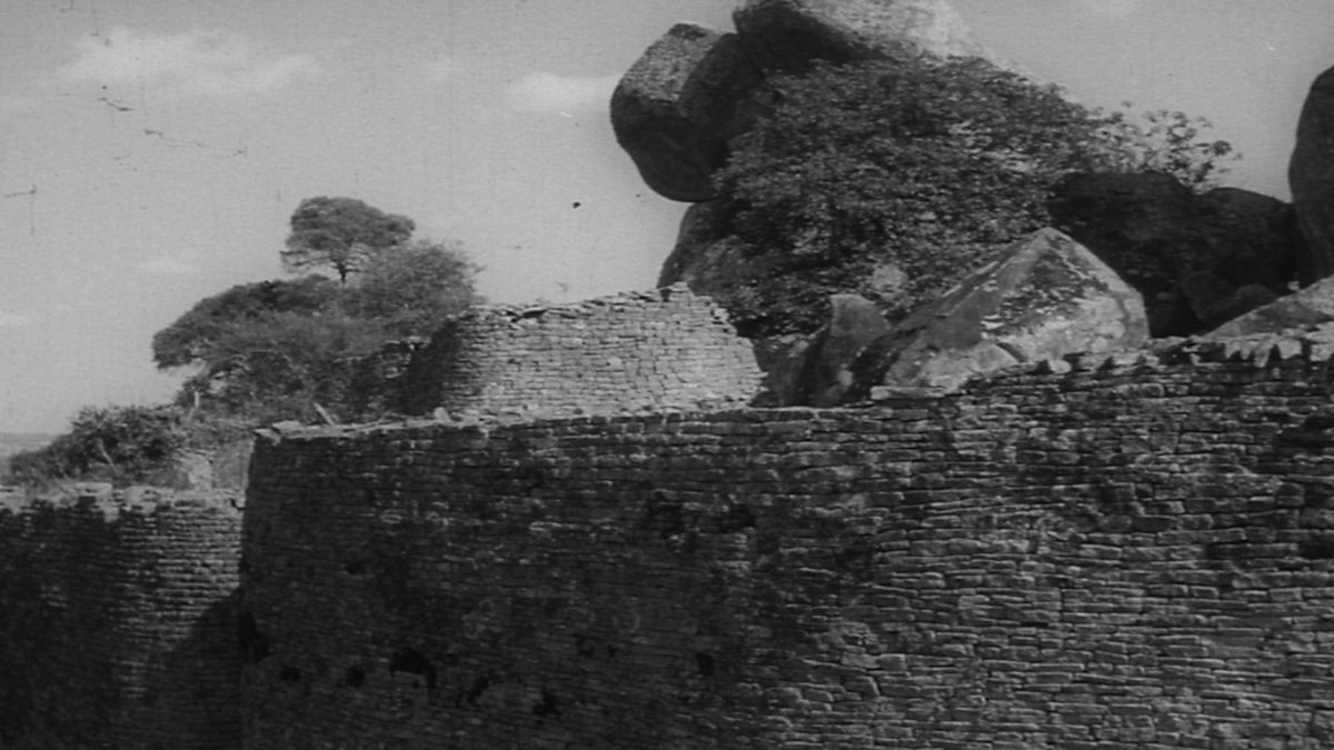 Sir Mortimer Wheeler reaches the most spectacular part of the Great Zimbabwe acropolis.