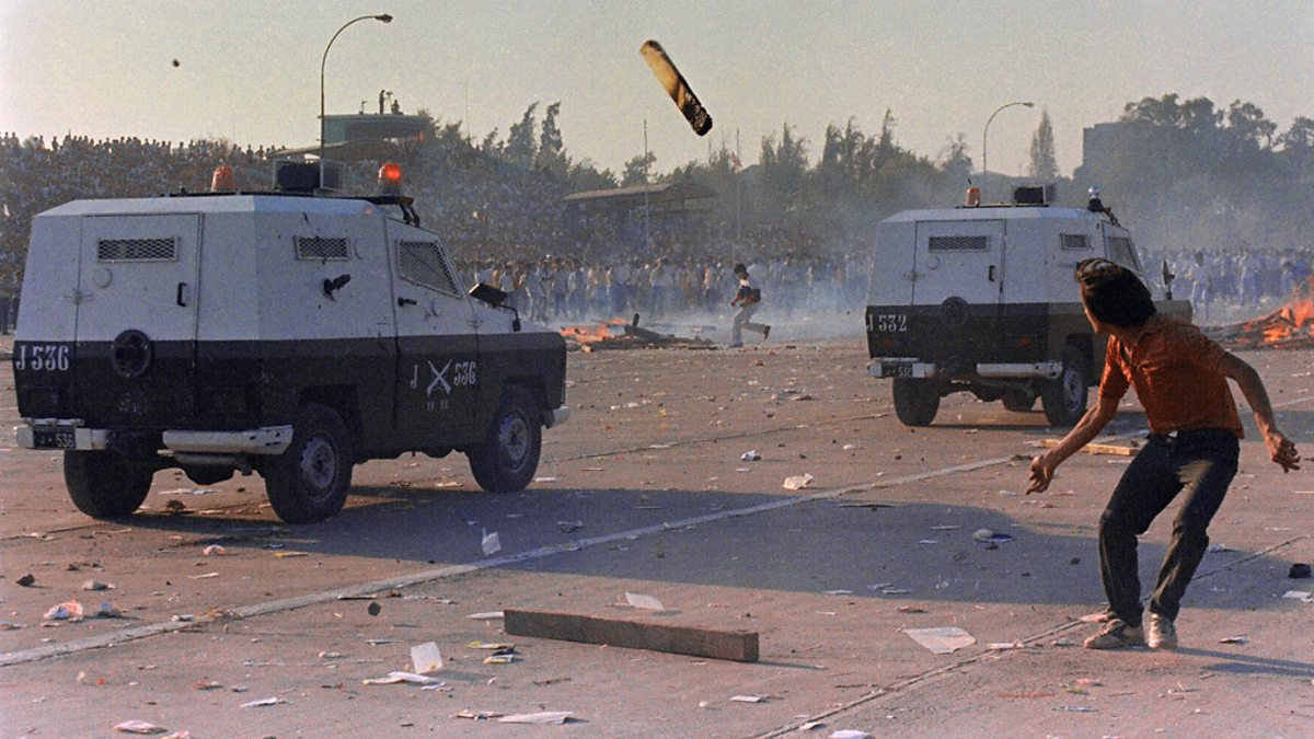 Photo: Anti government protests in Chile, April 1987. Credit: JOSE DURAN/AFP/Getty Images)
