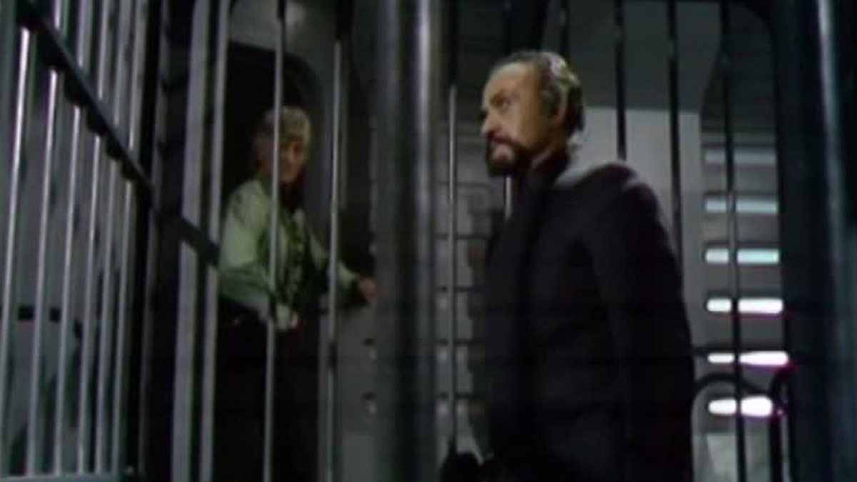 The Master threatens to expel Jo into the vacuum of space.