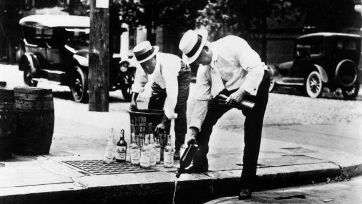 (Photo: Two men pouring alcohol down a drain during prohibition in America circa 1920. Credit : Hulton Archive/Getty Images)