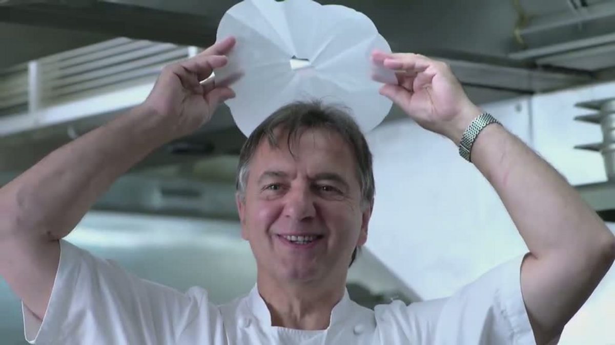 Pistachio soufflé with bitter cocoa sorbet—Baking