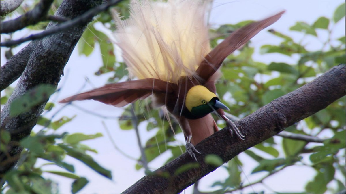 Images of a wide variety of birds including birds of paradise in the wild. The birds display their feathers and their exotic beauty and colour is a spectacle.
