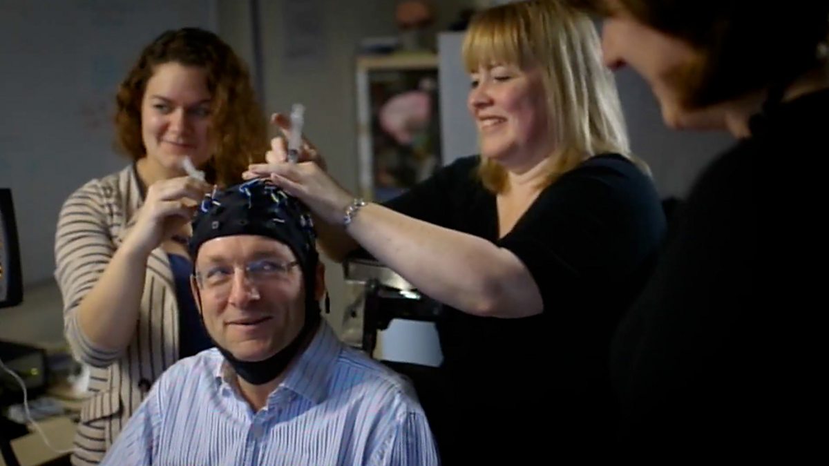 Michael Mosley gets his brain tested in a lab at Essex University with one of the leading researchers into the new science of optimism, Professor Elaine Fox.
