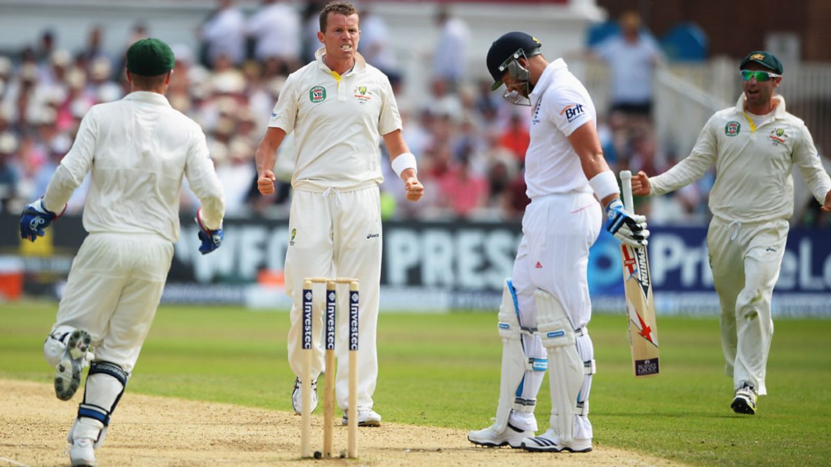 Matt Prior is out pulling Peter Siddle's short ball to midwicket on the third day of the 1st Ashes Test.