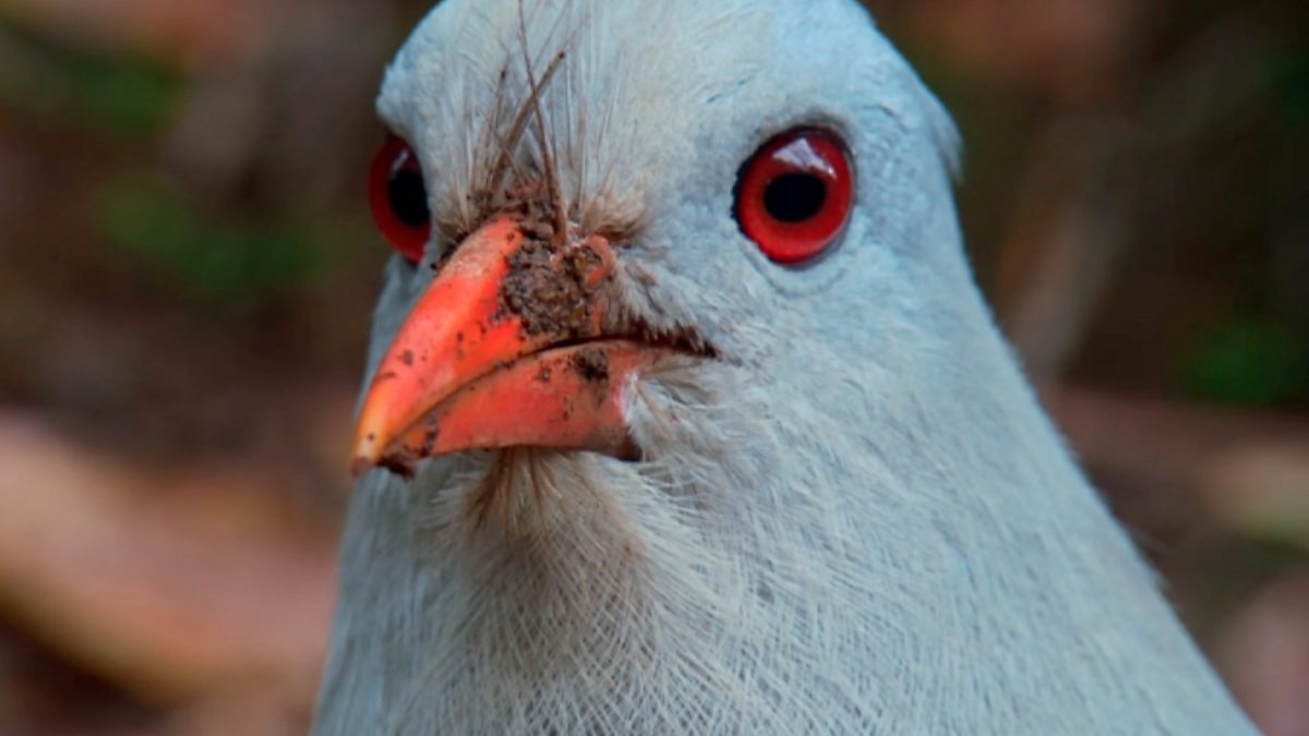 The male kagu displays to his life long mate.