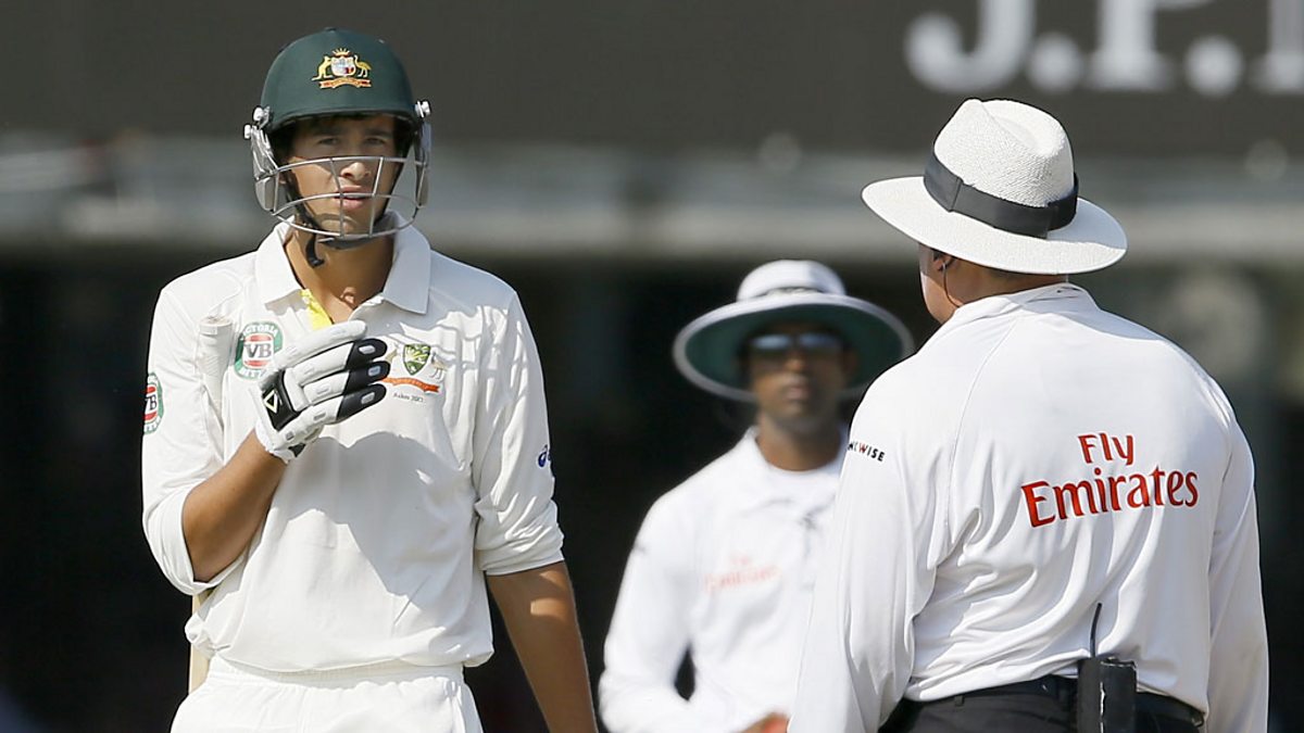 Australia's Ashton Agaris out for 16 on a successful review by England.