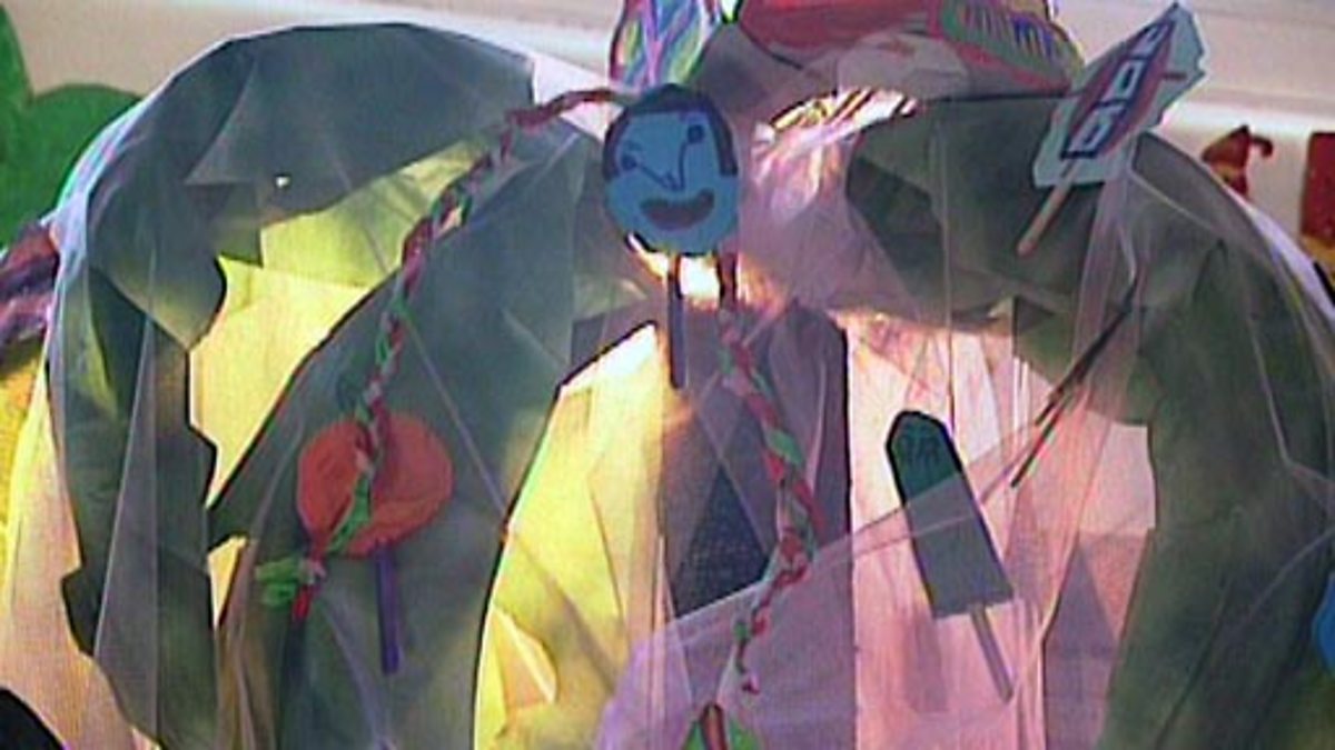 Children create a fantasy indoor garden based on their experiences of making their own outdoor wildlife garden. They take their imaginative ideas inside and set to work on designing an area they can use in bad weather. A wide range of different materials and styles are used and their garden comes alive as they fill it with insects, lemonade ponds and ice lolly trees.
