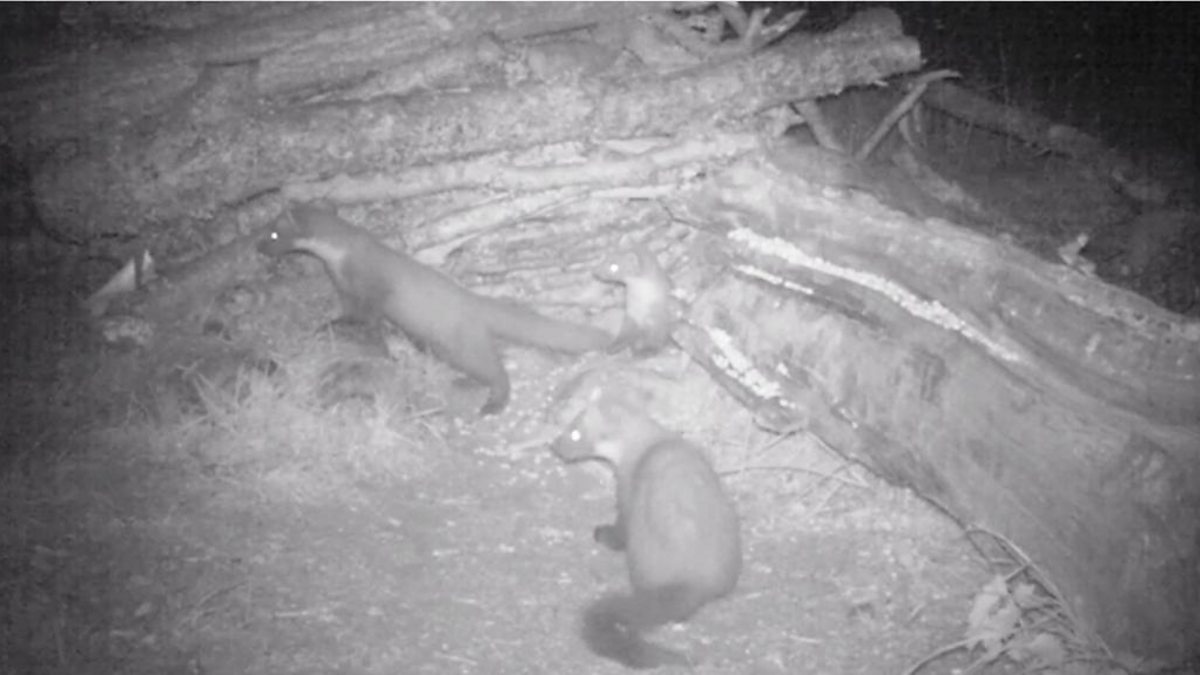 An unknown pine marten family witnessed on the night camera trap at 23:57