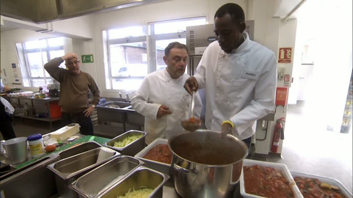 The celebrities are thrown into the world of mass catering. Comedian John Thomson and athlete Phillips Idowo pair up to cook for over 100 students but don’t quite make it in one piece.