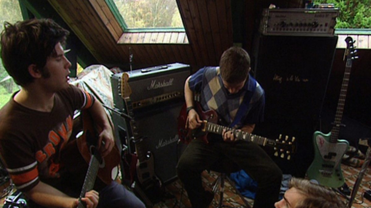The members of the boyband Snug explain how they work together to create vocal harmonies. They demonstrate how to divide the notes of a chord between the members of the band to create vocal harmonies. Finally, the process of creating a multi-track recording of a song is explained.