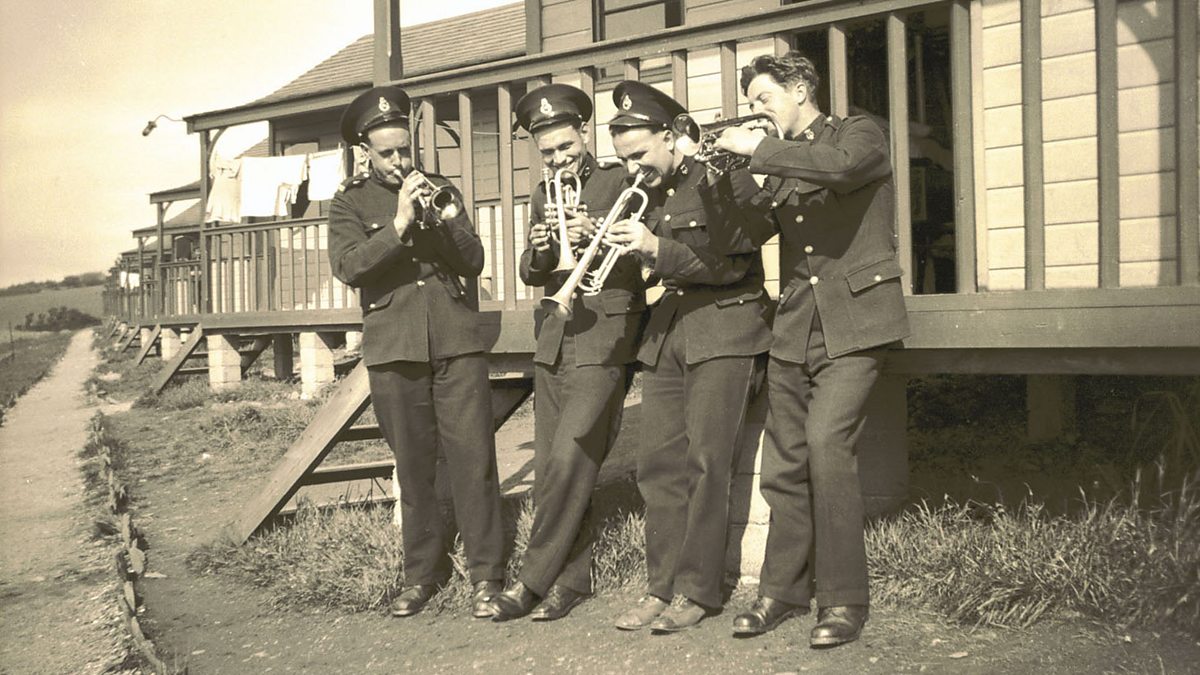 Photo: George Lloyd (far right) playing with the HMS Trinidad band.