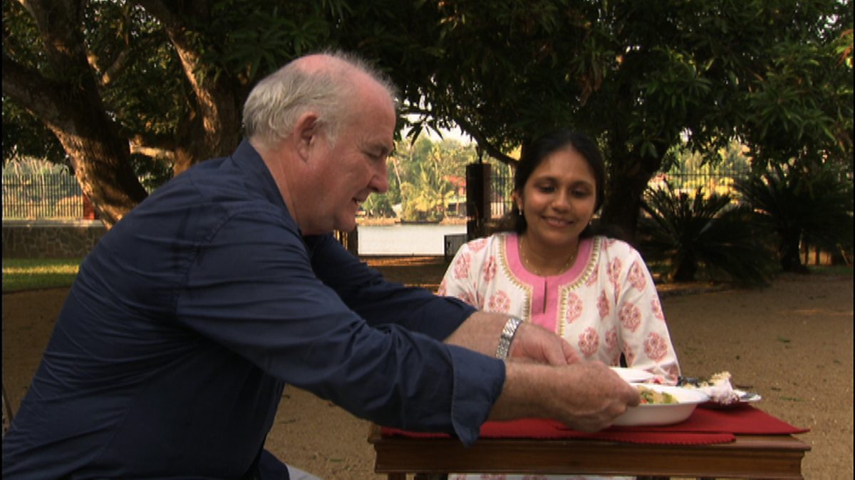 The flavour of fish curry, for Rick, is the most memorable of all dishes India has to offer. Rick visits a farm on the Keralan backwaters and the lady of the house cooks Fish Moli.