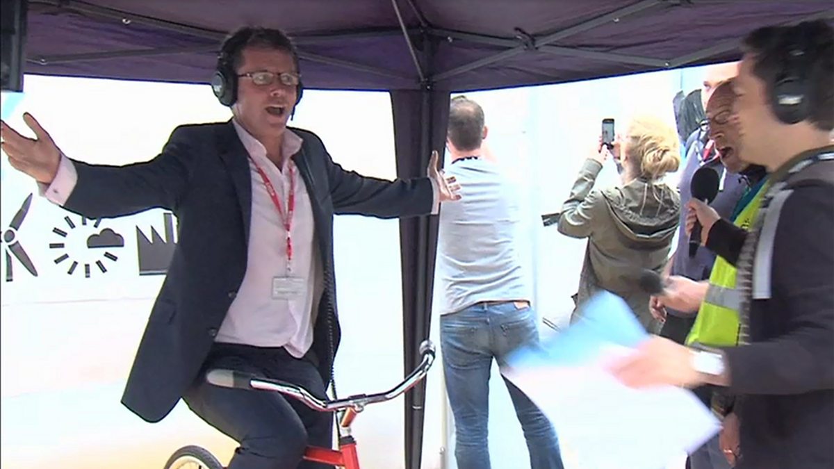 As part of 5 live's Energy Day, Nicky attempts to produce energy from pedal power.