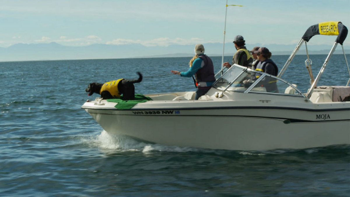 Tucker the rescue dog is an expert in sniffing out killer whale poo.