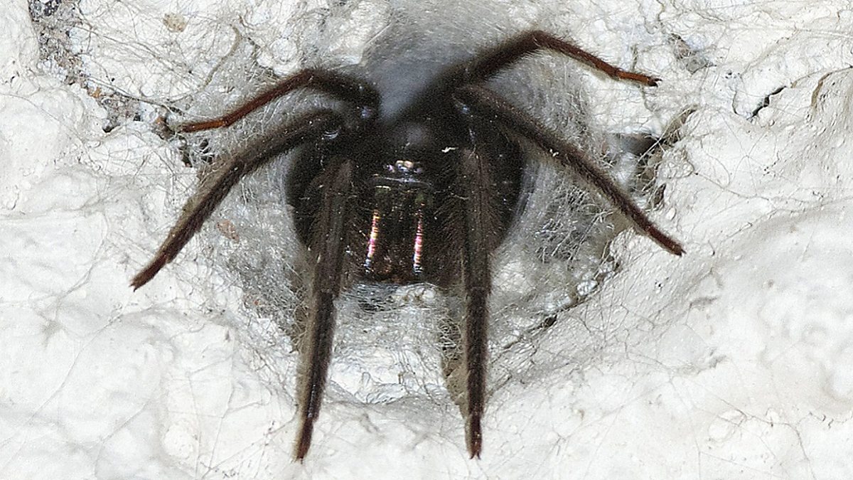 Chris Sperring searches for tube web spiders at Exeter Cathedral.