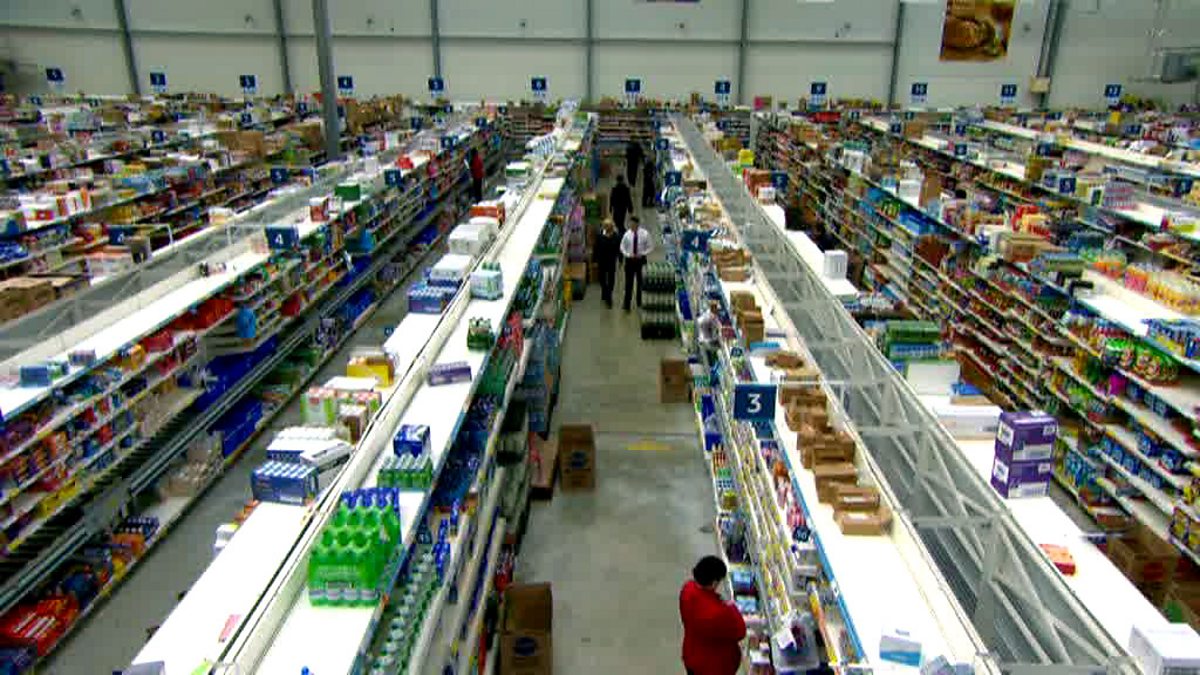 Gregg Wallace visits the supermarket with no shoppers or checkouts.