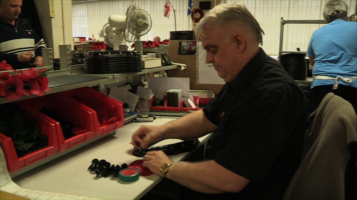 We go behind the scenes at the factory that makes all our Remembrance poppies. We meet the deaf workers and also the veterans who are being helped back into work by the factory.