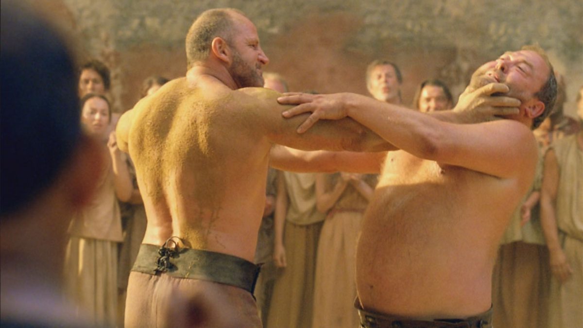 Hercules loses in a wrestling match whilst trying to impress Medusa.