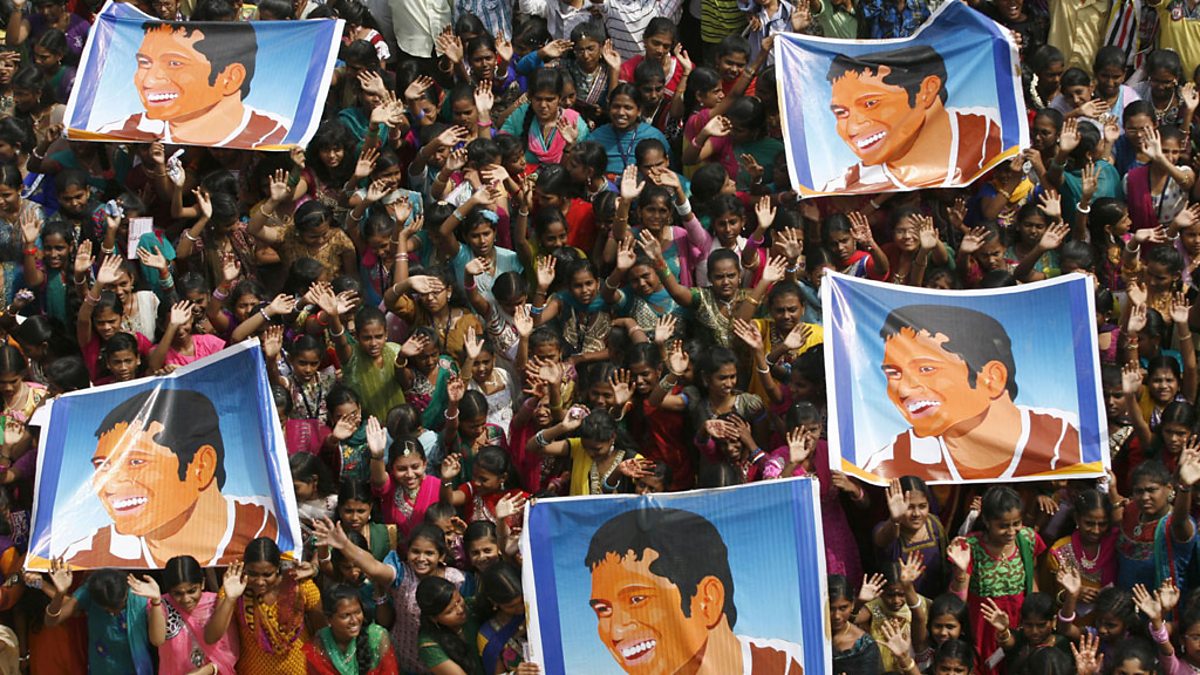 Picture: Crowds hold up posters of Sachin Tendulkar