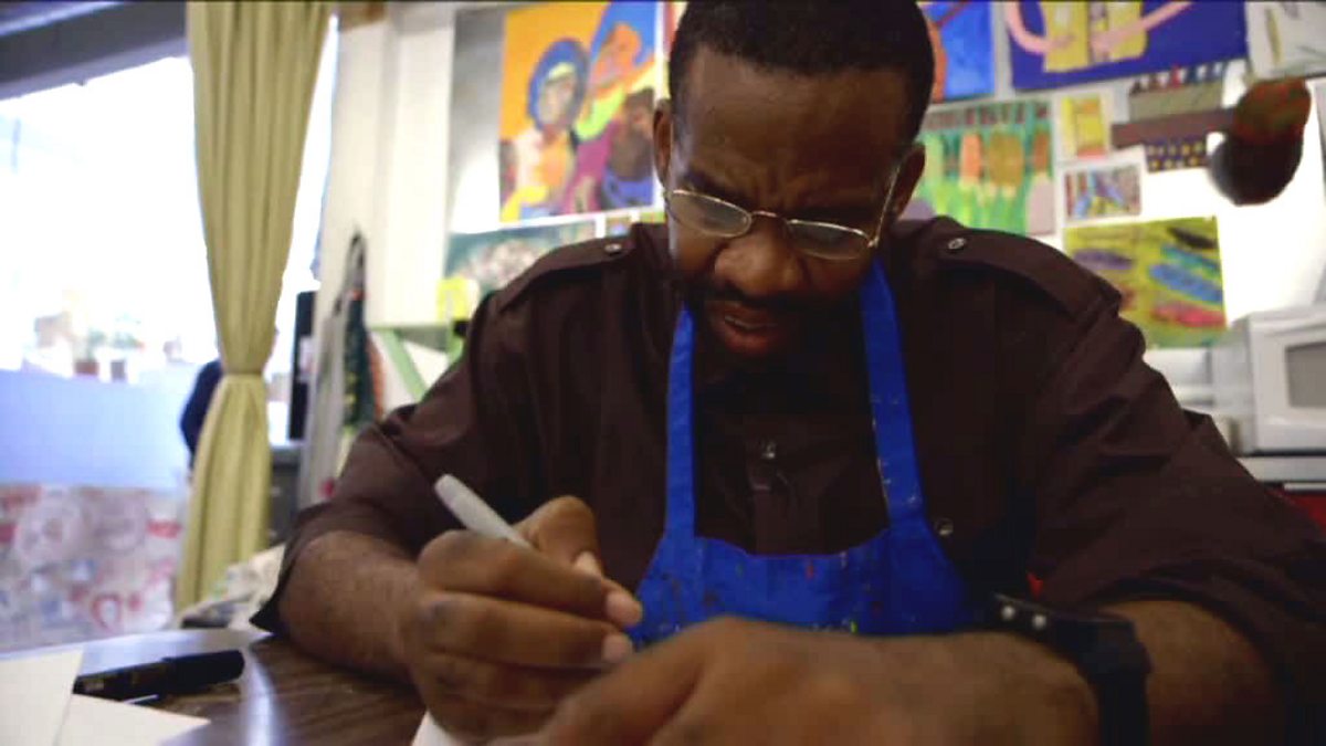 William Scott lives in San Francisco and has been going to Creative Growth – a day centre for disabled artists in nearby Oakland – for almost 20 years. His work has been exhibited in New York, London, Paris, and Miami.