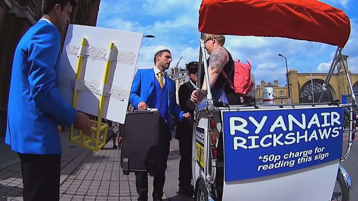 Take a ride on the Ryan Air rickshaw for really good rates*. *Price of baggage and customer service not included.