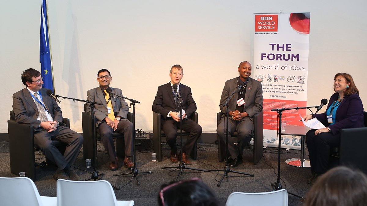 (Photo: From left to right, Luca Montanarella, Girish Menon, Jean-Pierre Halkin, Ernest Ruzindaza and presenter Bridget Kendall)