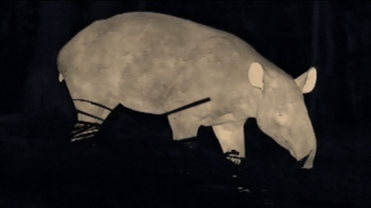 Tapirs are the largest forest animals in Central America. Although not strictly nocturnal, they prefer foraging in cool of the night and they are well-equipped to do so. To help them sense their world at night they have large ears and an acute sense of smell, which allows them to identify over 100 different types of plant. Rainforest plants try to protect themselves from herbivores by producing different types of toxins but the tapir works around this problem by sniffing out and eating a varied diet so it does not accumulate high levels of a single type of toxin.