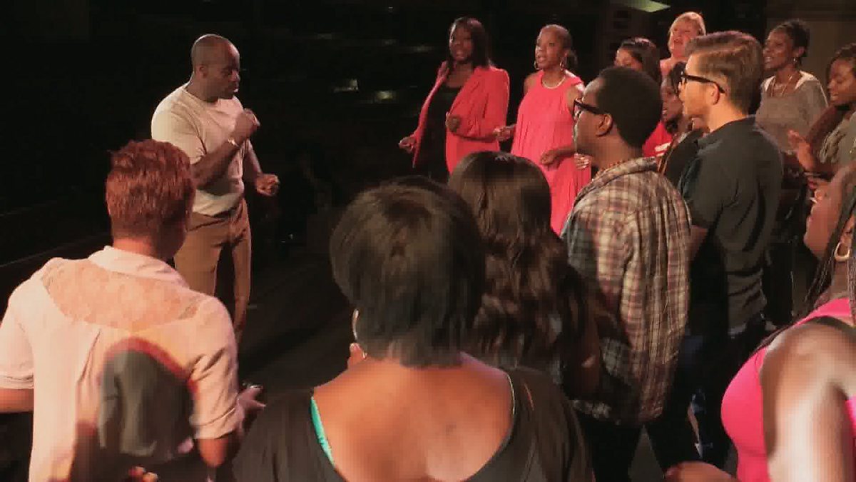 Gareth rehearses with the London Community Gospel Choir and gets chosen to improvise a solo.