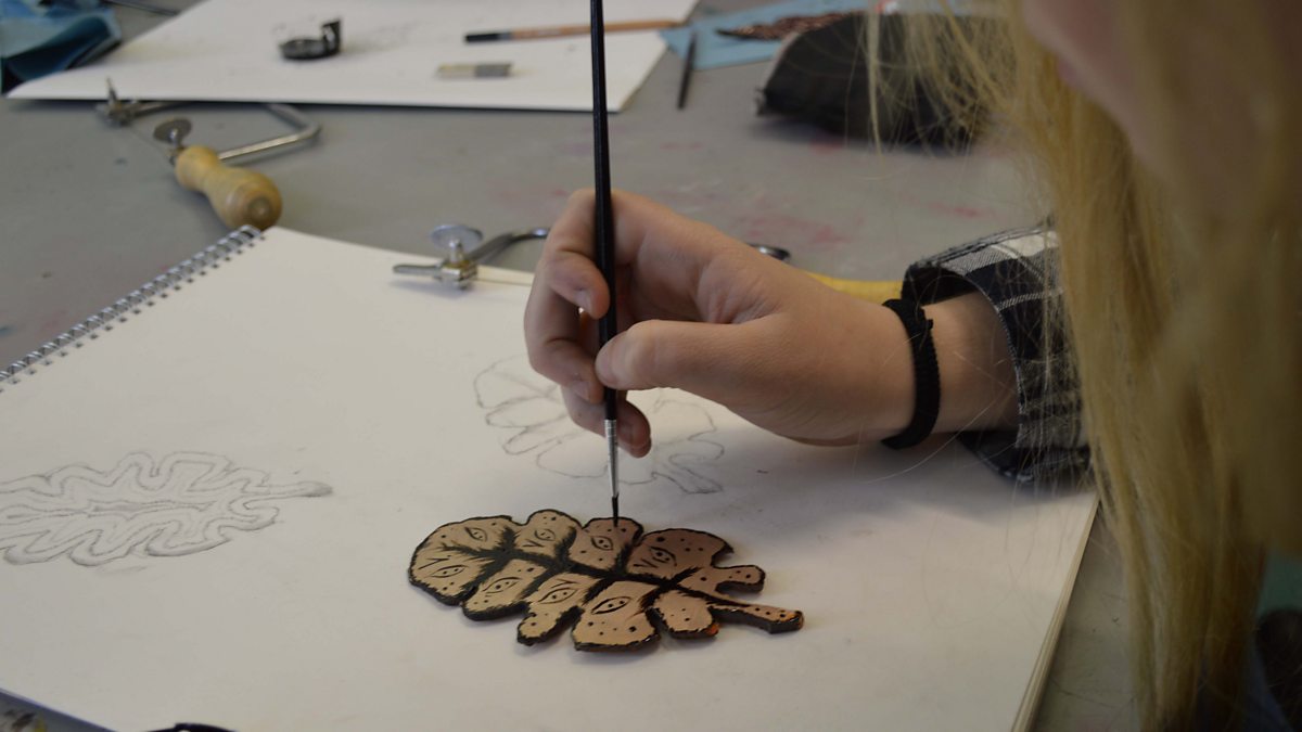 Students make leaves for Alan Burke's City of Culture sculpture commissioned by the BBC