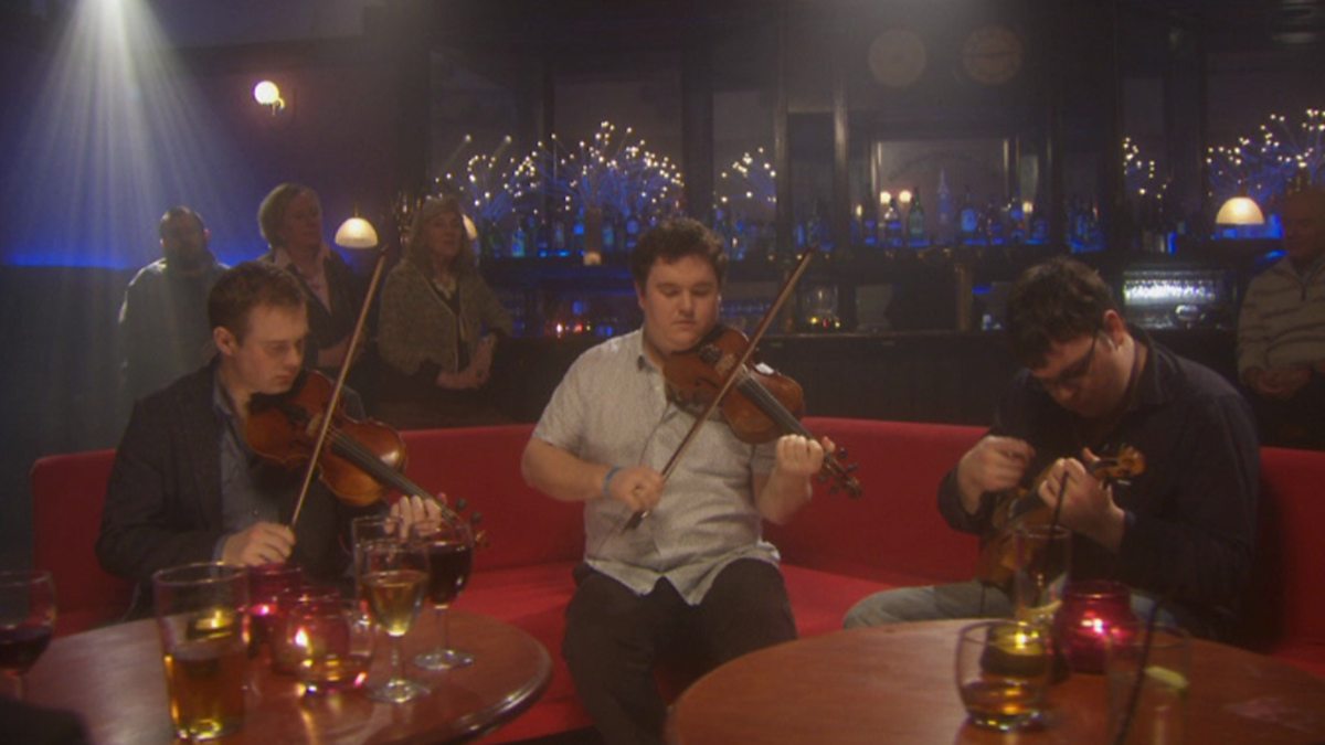 Fidil a’ cluich The March of the Min na Toitean Bull air a’ phrògram Hòro-gheallaidh.