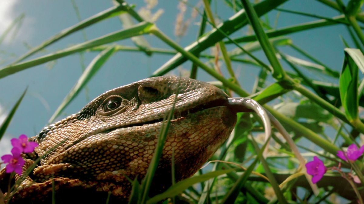 In an effort to outrun a monitor lizard a sengi speeds along its racetrack.