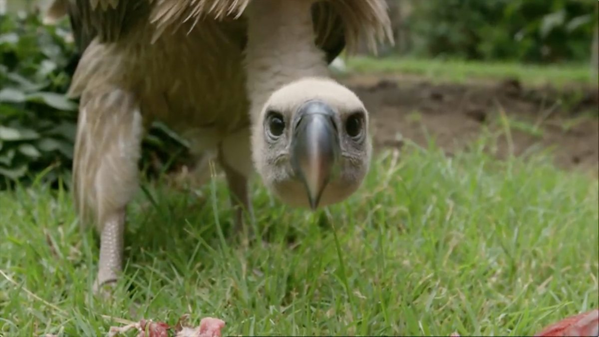 Hand feeding a tame vulture reveals how good they are at stripping bones.